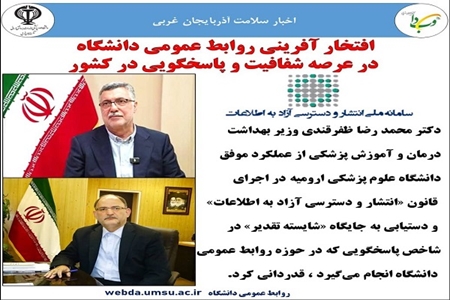 افتخارآفرینی روابط عمومی دانشگاه علوم پزشکی ارومیه در عرصه شفافیت و پاسخگویی در کشور