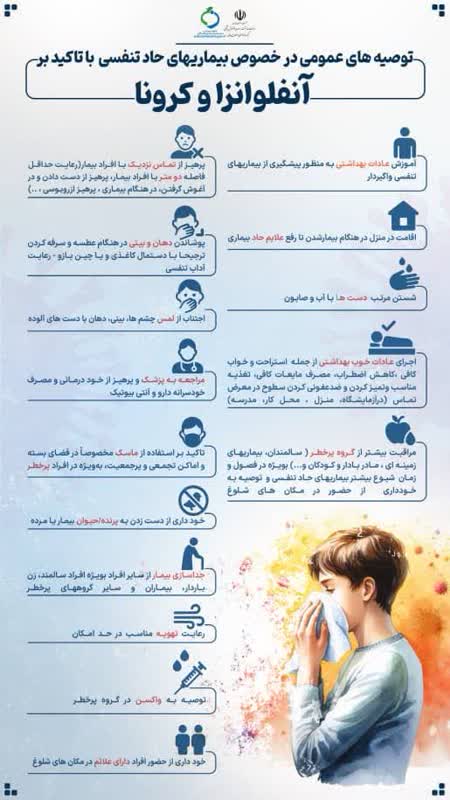 •          آنفلوآنزا: ممکن است باعث عوارض جدی مثل ذات‌الریه، عفونت گوش، تشدید بیماری‌های زمینه‌ای شود (به‌ویژه در کودکان، سالمندان و افراد با ضعف سیستم ایمنی)