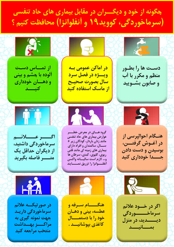 •          آنفلوآنزا: تب بالا (۳۸ درجه به بالا)، معمولاً ناگهانی
